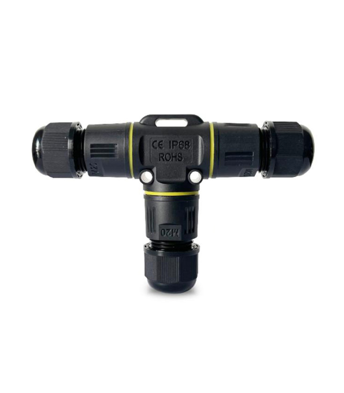 Le connecteur rapide étanche IP68 de type T série MH-TXM20 est un dispositif de connexion électrique conçu pour réaliser des raccordements sécurisés et étanches entre trois câbles électriques. Sa conception en forme de T permet de créer une dérivation à partir d’une ligne principale sans utiliser de boîte de jonction classique.