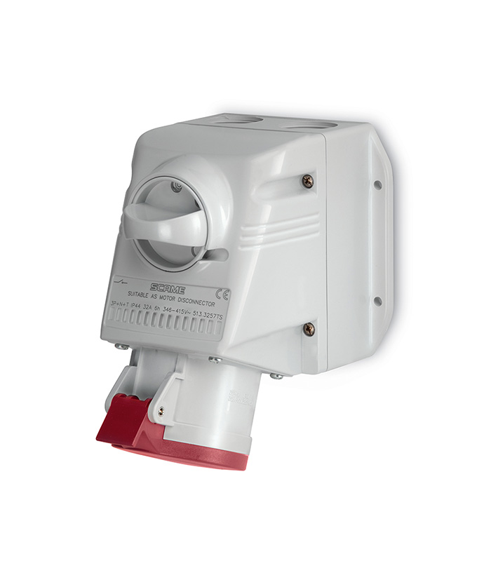La prise murale OPTIMA-TOP est conçue pour les environnements industriels exigeants. En montage en saillie, elle accepte une alimentation triphasée 3P+N+T avec un courant nominal de 16 A.